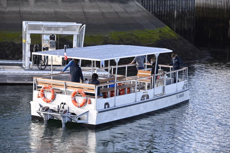 Silent, 100% electric catamaran WePro 900 moves without waves, carrying up to 24 passengers with efficient, accessible transport on inland waters.