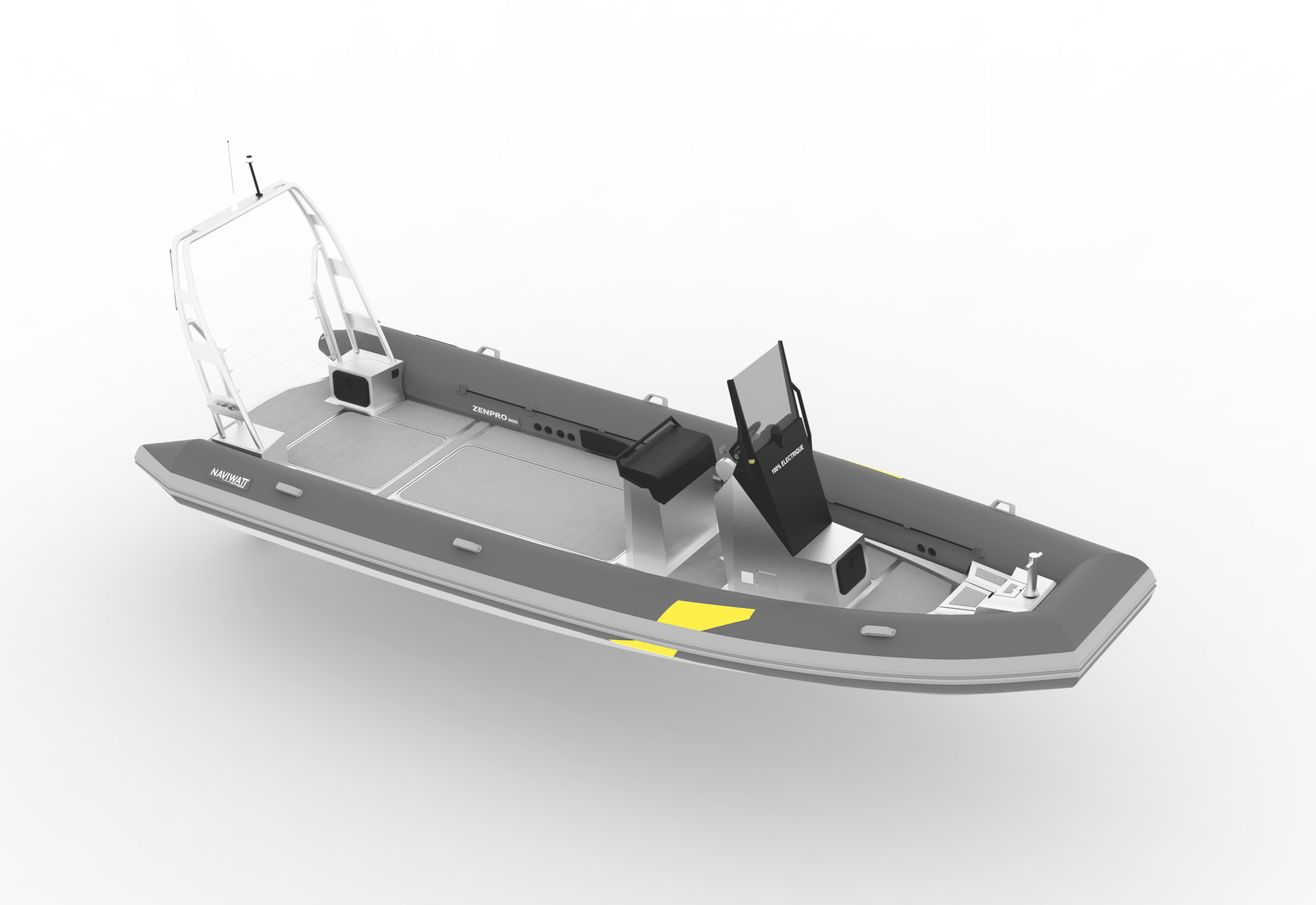 Discover how the Naviwatt ZenPro 800 can meet your boating needs with its robust aluminium hull, professional‑grade design and 100% electric propulsion system. Whether you use it for work or leisure, this 8‑metre RIB offers stable performance, generous deck space and capacity for up to 14 people. Its quiet, zero‑emission motor makes it ideal for intensive daily use in ports, coastal operations or eco‑tourism activities
